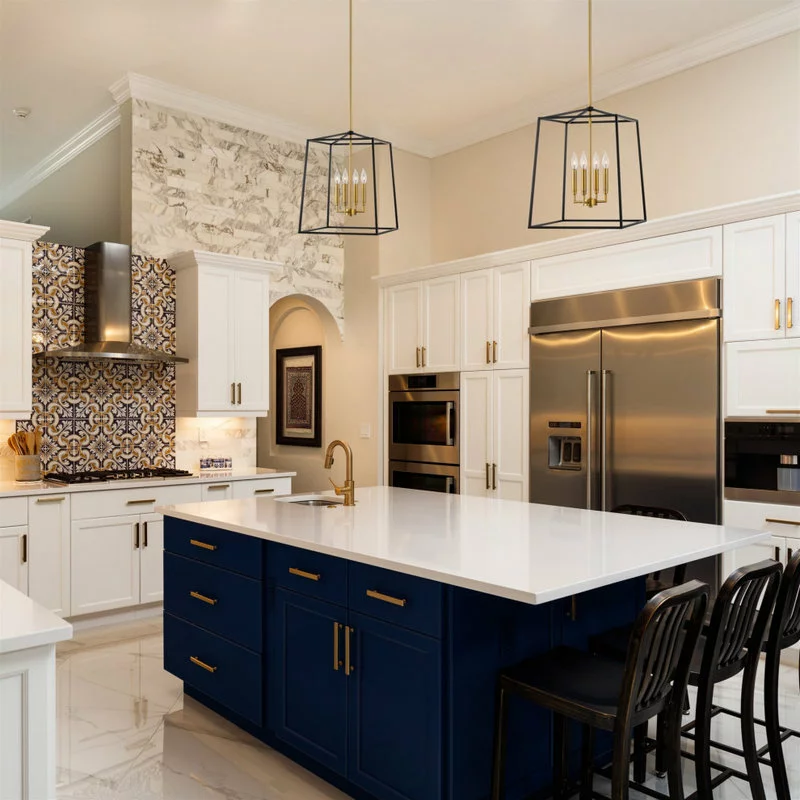 Kira Home’s Bellevue 18″ modern farmhouse pendant chandelier is an instant statement piece in your home. Unique in style, this hanging light showcases a two-toned warm brass and black finish frame. Hang in a variety of interior styles and decor to make an effortless style impact. Enhance decors ranging from rustic and industrial farmhouse to modern, contemporary and art deco. With its geometrical design and one of a kind aesthetic, this pendant chandelier will elevate homes and hospitality settings alike. Brighten up even the darkest of spaces including over a dining room table, above a kitchen island, counter or breakfast nook. Spruce up a foyer or stairway or other high ceiling spaces. Customize this piece and adjust hanging heights to your preference. 48 inches of downrod is included, giving it a minimum/maximum hanging height of 27″ to 69″. Need to set the mood? Bellevue works with standard dimmer switches when paired with compatible bulbs. Pair it with clear candelabra base bulbs for the complete look, or if you’re looking for a vintage look and feel, choose bulbs with an Edison style. This hanging chandelier is also sloped/slanted ceiling compatible to suit your needs. Unlike our competitors, Bellevue is UL approved for your safety.
