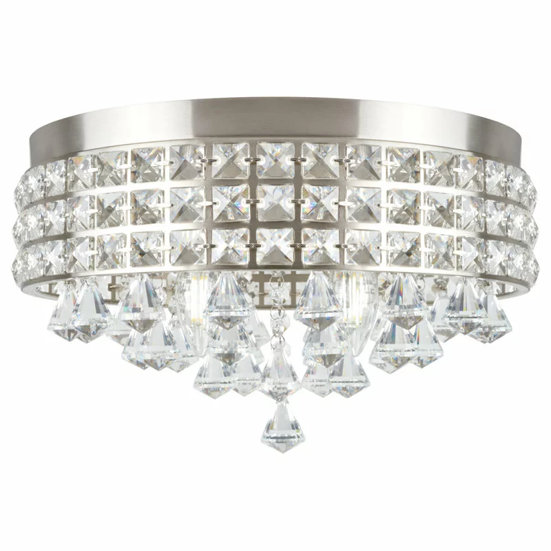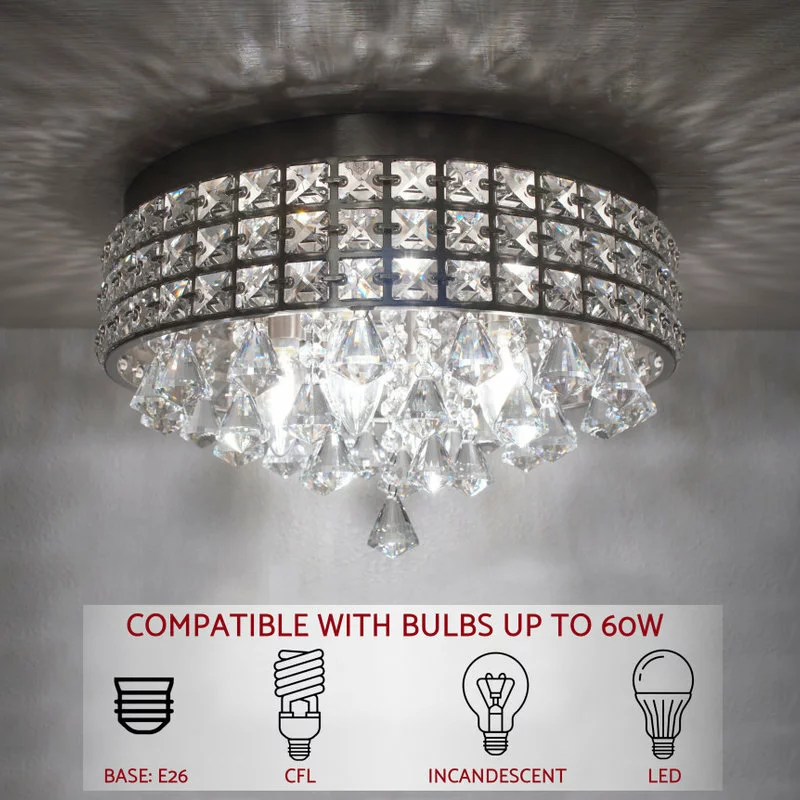 - ELEGANT LIGHTING: Crystal flush mount chandelier features a brushed nickel finish and silver accents. It boasts stunning faceted crystals as well as dangling crystals. The sparkle and light refraction of this piece produces a beautiful pattern and glow