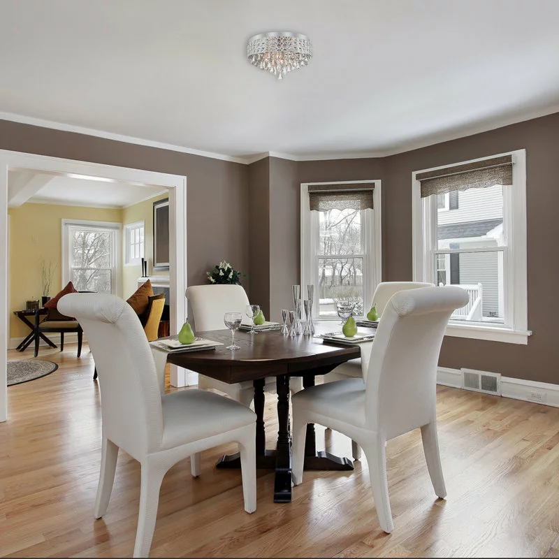 - ELEVATE YOUR DECOR: Mount this beautifully crafted crystal light fixture in many areas. This low-profile flush mount can dress up a hallway or walk-in closet. It’ll be a dazzling addition over a dining room table, in a foyer or lobby. Dimmer compatible