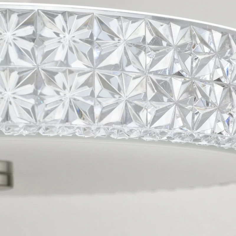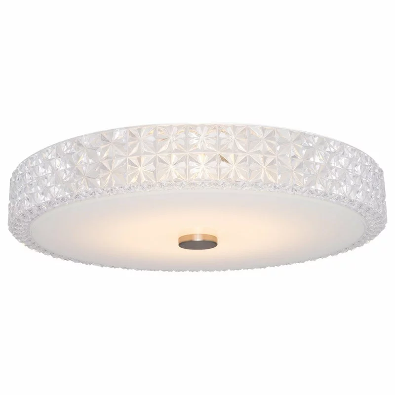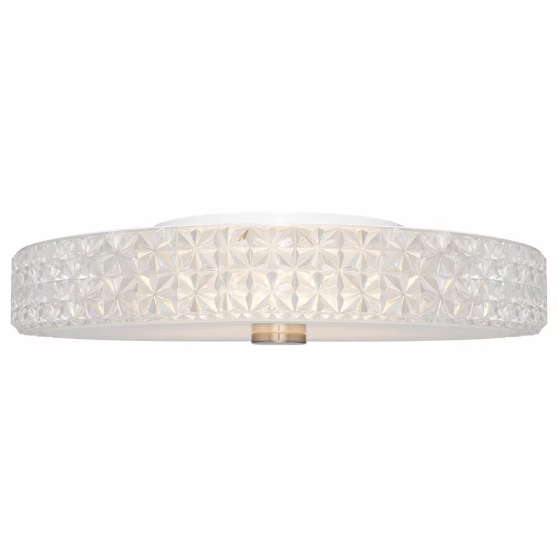 - MODERN STYLE: Stunning flush mount features a clear faux crystal shade and white finish. With its sturdy frosted glass diffuser, brushed nickel accent and white finish, this stylish ceiling light will become the perfect conversation piece