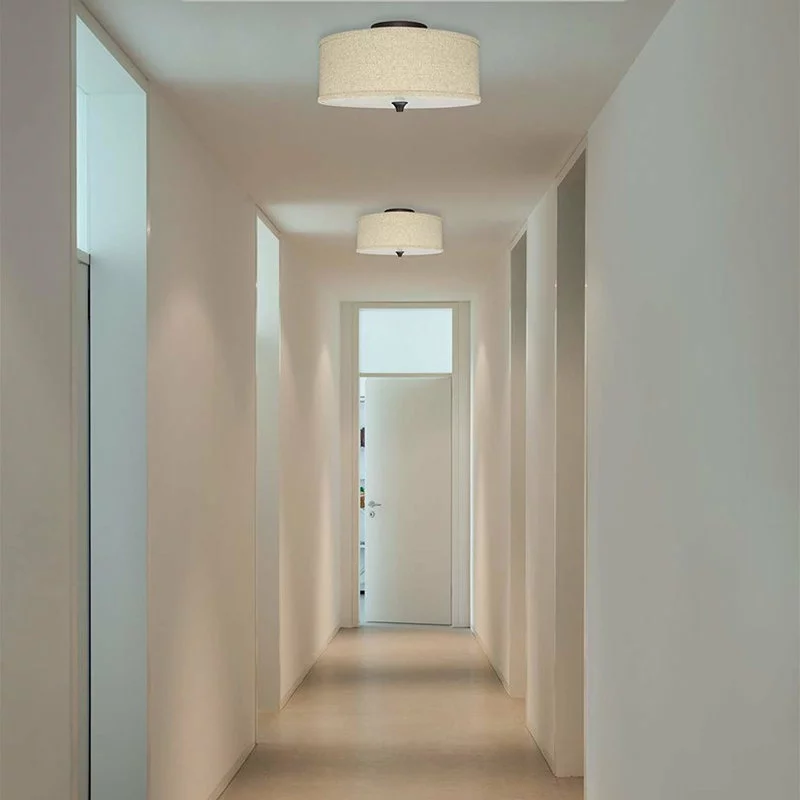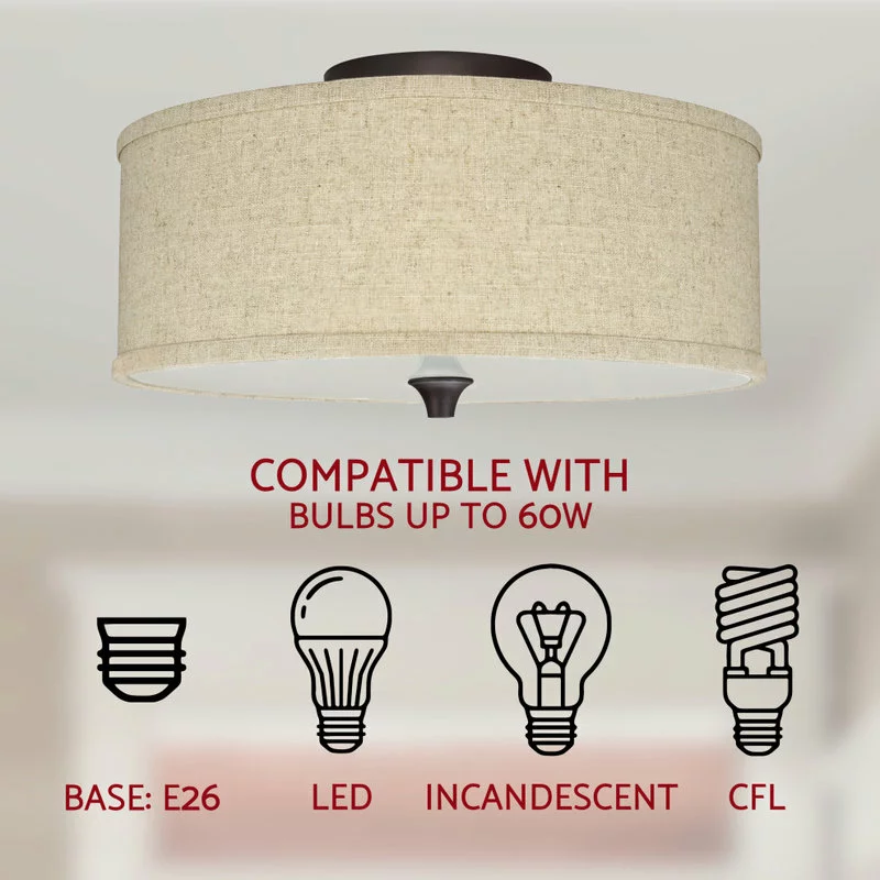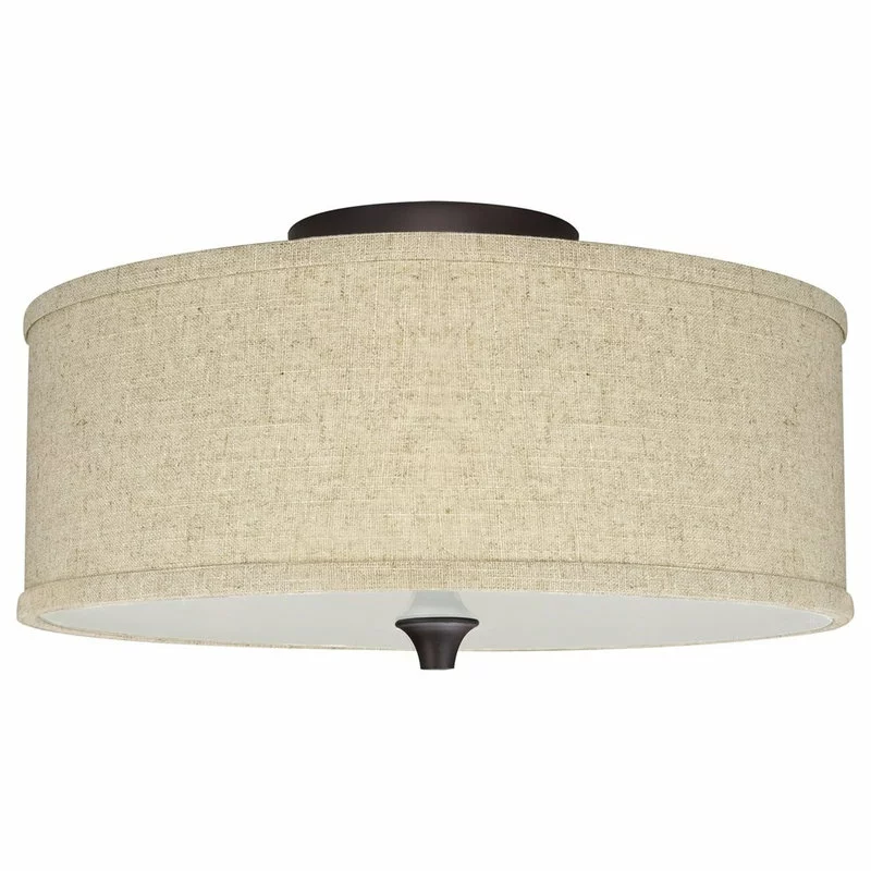 - MODERN STYLE: 2-light semi-flush mount features a beige, linen drum shade, frosted glass diffuser and oil-rubbed bronze finish. Classic in design, illuminate your home with this bright & timeless ceiling light sure to fit many interior styles and decor