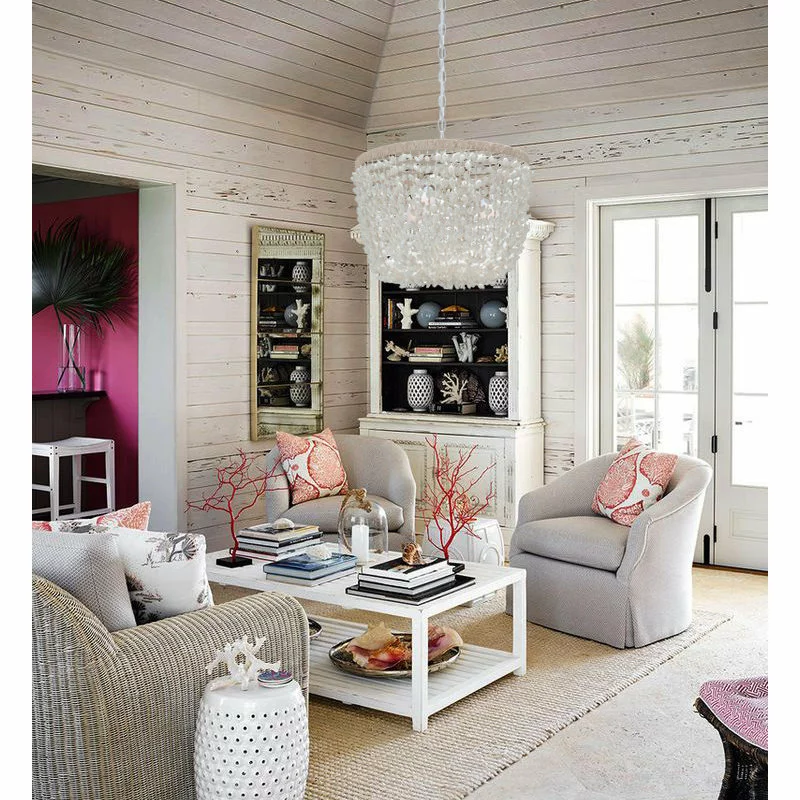 Bring some coastal bliss to your home with this intriguing pendant lamp. Put it over your kitchen table, in your bedroom or your powder room and the space will shine in a new light. The hand set Bubble seashells create a rich pattern while the white color provides cool elegance.