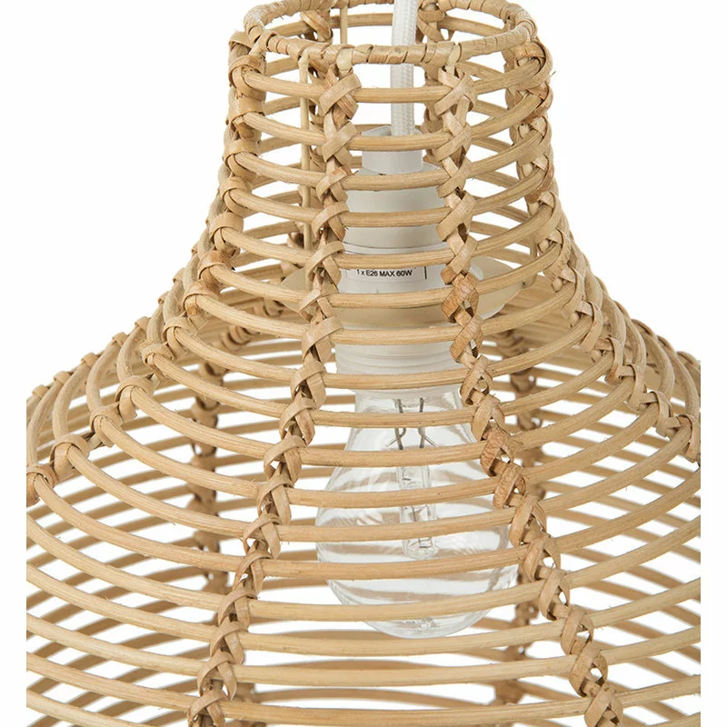 The graceful curves of this pear shaped wicker pendant lamp add softness and warmth. Brighten your home dC)cor with this natural colored pendant light.