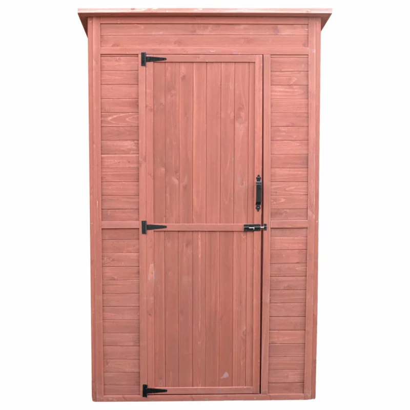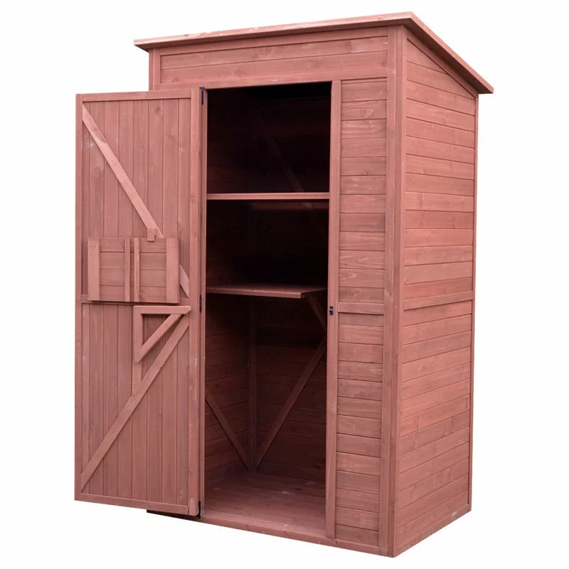 Outdoor deep storage shed with drop table stores equipment and tools of various sizes. Higher clearance, versatility, and wider work surface were the aspirations behind the design of our deep storage shed with drop table. With interior shelves, solid construction, and spacious interior we delivered a chalet-like shed perfect for rakes, shovels, and gardening supplies.
