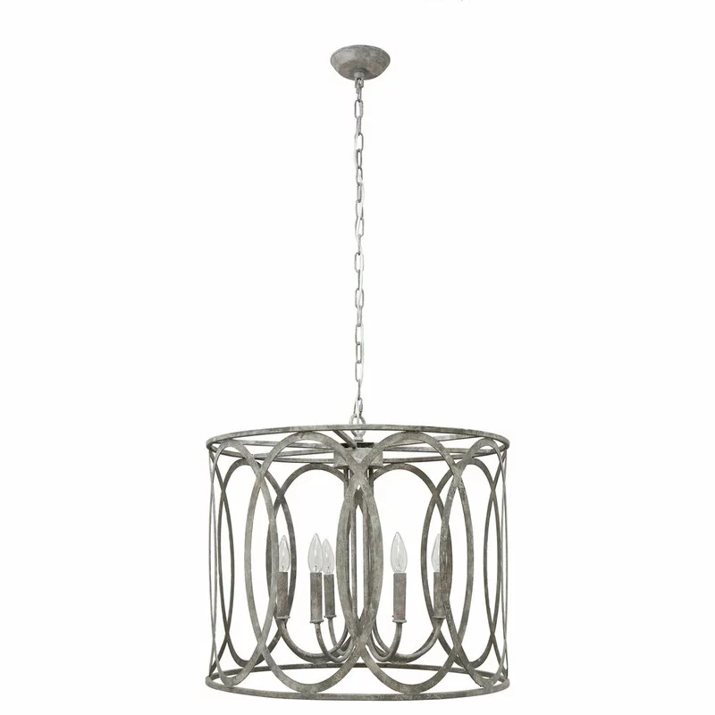 This oversized drum pendant is the new trend of simple clean lines, updated with rings to add sophistication. Perfect in modern farmhouse or transitional chic interiors. The distressed gray finish is hand-applied with many layers of colors to give depth and richness. Also available in 12″, 18″, 31″, 48″ drums and 45″ rectangular, in gold, gray or brown finishes.