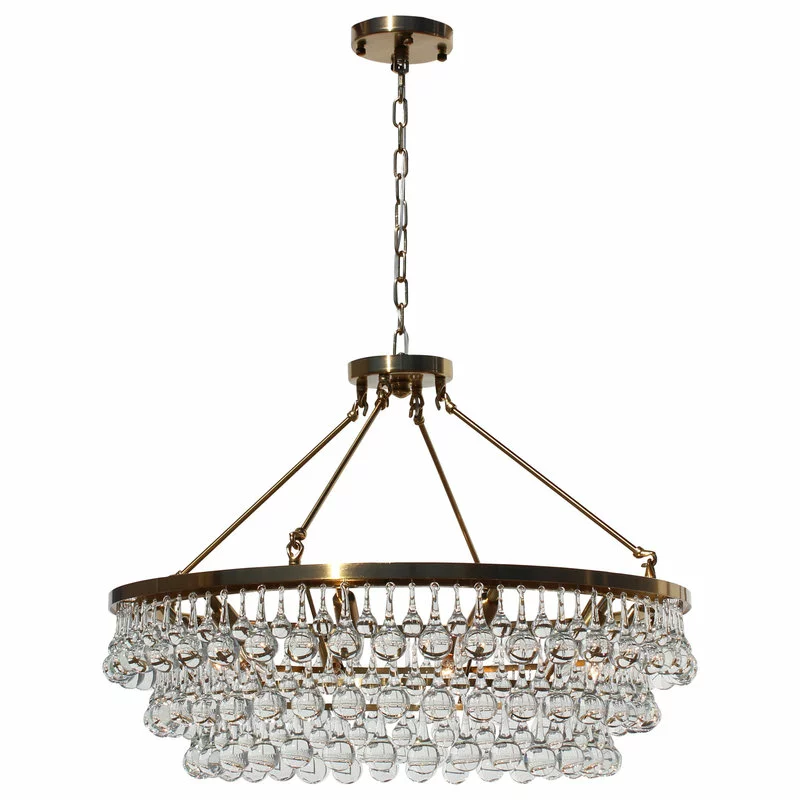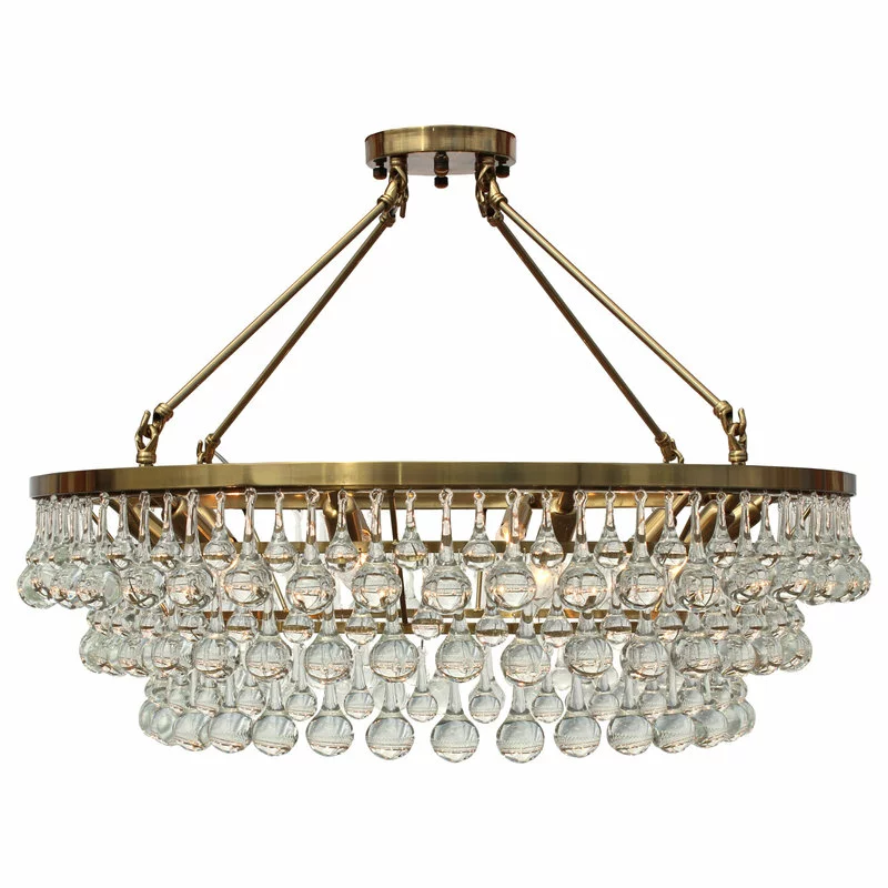 Hundreds of large clear glass drop crystals surround this brass finished frame. With the ability to display this light as a hanging or flush mount version, the versatility of the Celeste Chandelier makes it the perfect fit for any space.