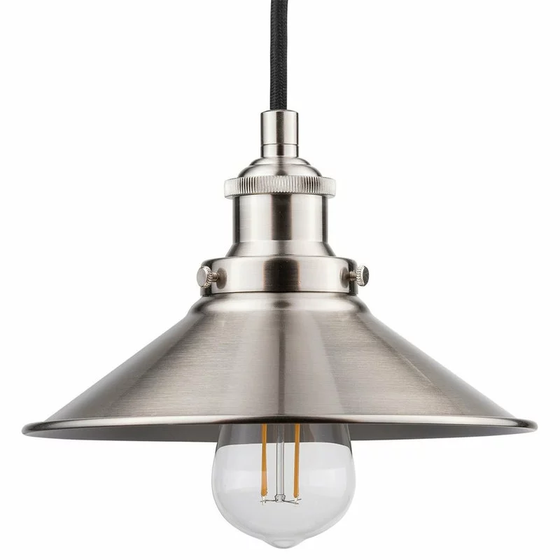 The epitome of modern vintage, Andante pendant fixtures call to mind industrial lighting from the 1900s, with vintage lines and exposed hardware. The Andante Collection is available in brushed nickel, polished chrome and antique brass. A LED Edison style bulb is included.