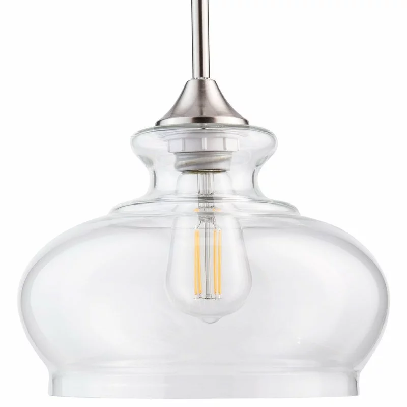Ariella pendants provide warm, comfortable illumination with their transitional design. The Ovale’s versatility allows it to be used in kitchens, dining areas, bathrooms, bars, and more. Brushed nickel finish.