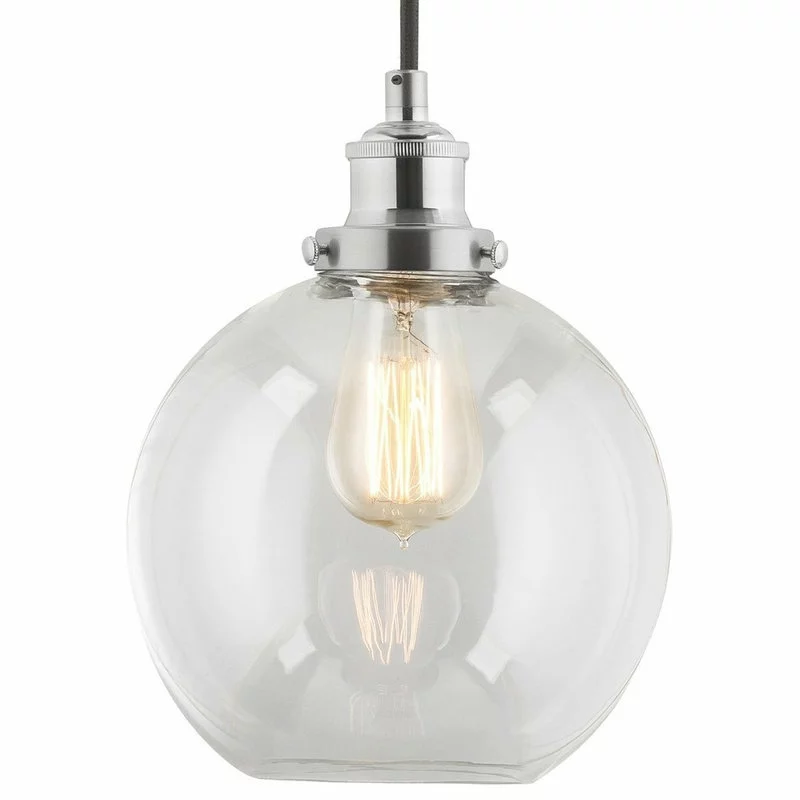 - 8″ Dia x 7″ H Round Clear Glass Globe with Exposed Decorative Hardware