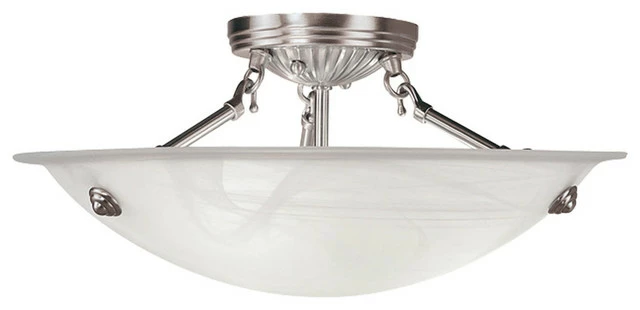 This ceiling mount features contour lines and a bowed profile. With an understated design, this piece is perfect for any space in your home. Featuring a white alabaster glass and brushed nickel finish, this fixture will effortlessly blend with your existing d�cor.