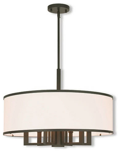 The elegant, circular silhouette of the Park Ridge Chandelier offers simple sophistication suited for your traditional home. The clean-lined metal accents and handcrafted fabric shade provide this piece with functional design. Lend light to your dining room while hosting family dinners with this chandelier.
