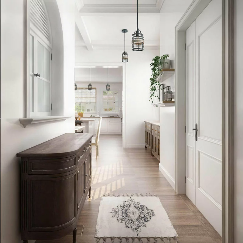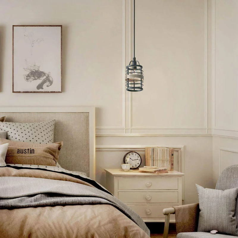 The nostalgic cage pendant light features distressed finish and adds a decorative old-style appeal. It is designed to cast light in a downward direction. Supplied with 59″ of adjustable cord for each pendant light. This single light mini pendant features a transitional inspired design, giving off a modern accent to a sleek collection.