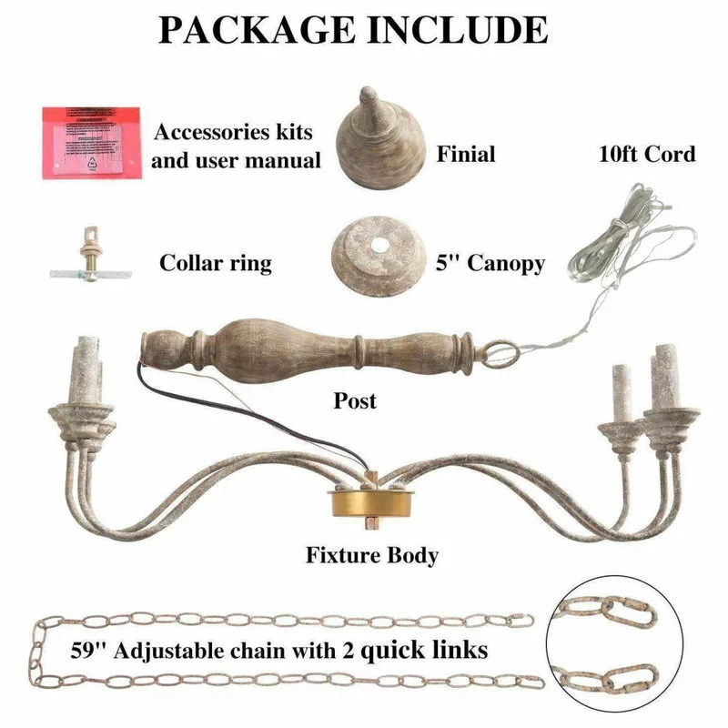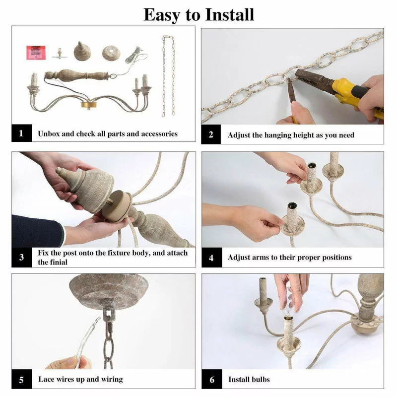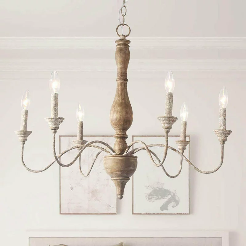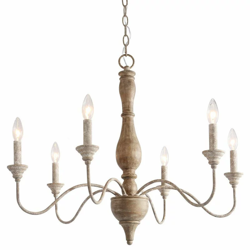 The simplicity of a 6 arm chandelier draped with classic candle design make this farmhouse chandelier an ideal fixture for many different decor settings. The bending tubes brings a farmhouse and chic appeal for your space. It is a classic elegant ceiling light with a distressed off-white finish that makes a lovely addition to any of space.
