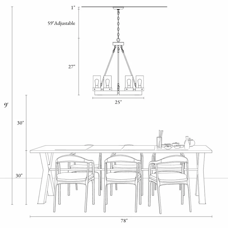 The 6-Light wood chandelier will lend a modern farmhouse charm to your decor. This beautiful six-light transitional chandelier has a wood ring frame, which creates the warm, inviting feel of this open and airy.Transitional Chandelier: it has a wood circular base with cylinder glass shades offering a refined appeal. Delicately hand crafted by skilled artisans, This farmhouse chandelier features a beautifully detailed design. The antique silver finish adds to the beauty.