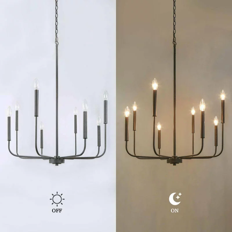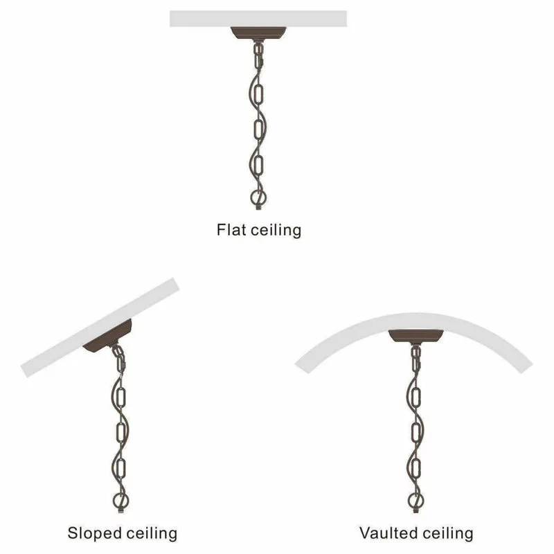 Finished in a rustic luxurious way, this chandelier can be hanged in the entryway, dining room, living room, foyer, or bedroom. Compatible with flat, sloped, slanted or vaulted ceilings. The chain length is fully adjustable to range from 0 to 39.5 inches. You can use a dimmer switch to control the light brightness. A stunning piece of accent lighting for using in entrance hallway, foyer, kitchen or dining room. The ceiling pendant provides soft illumination over a large area.