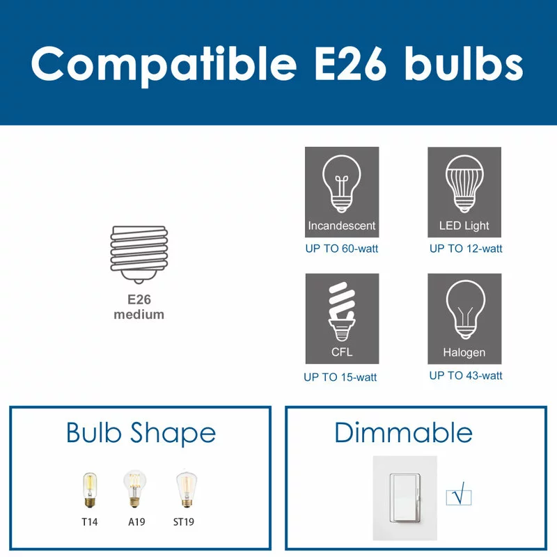- Dimmable: Yes, when used with dimmer switch and dimmable bulbs