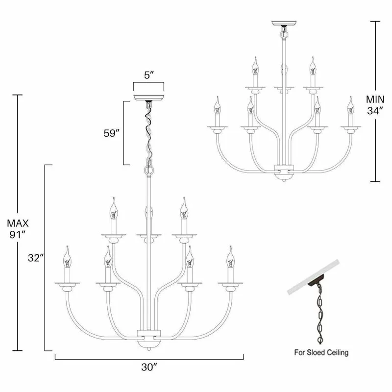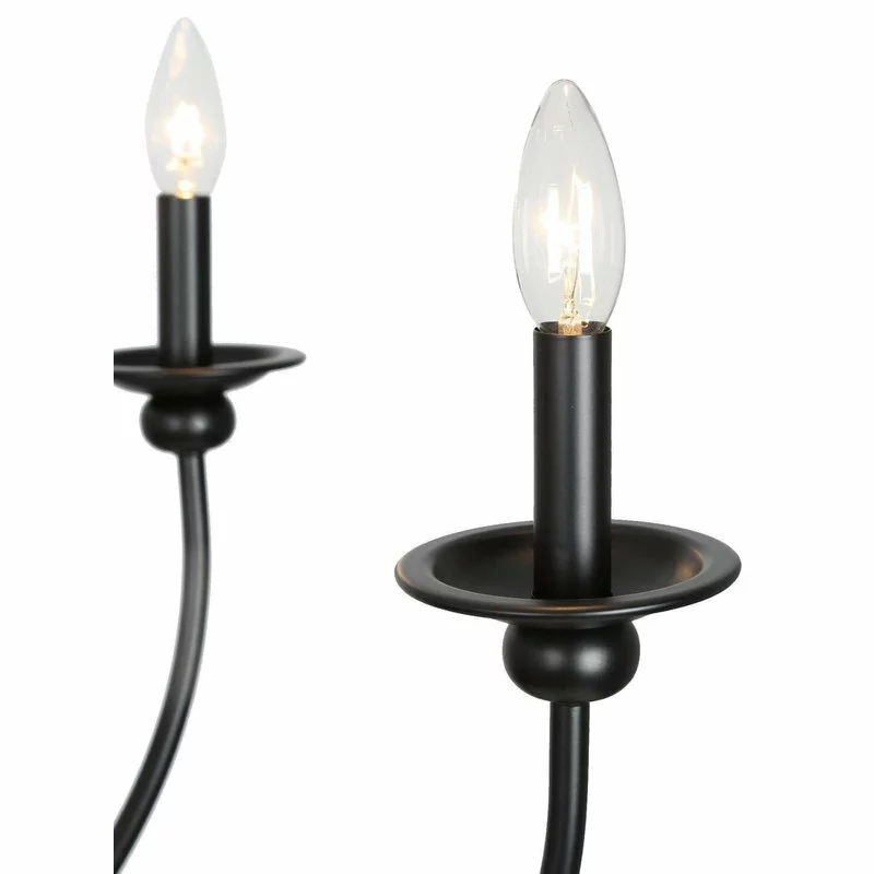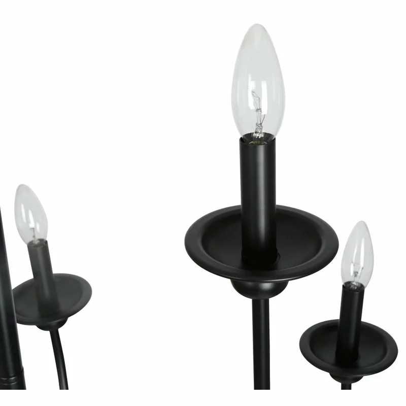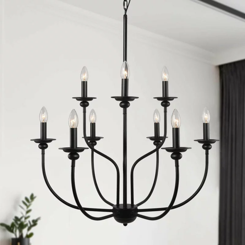 This versatile black large farmhouse chandelier from the Pastry collection of LNC lighting features concise wrought iron linear with softly curved arm in hand-painted black. The 2-tier black farmhouse chandelier’s iron arms extended confidently from a sphere and inserted with nine candlesticks holders. A center column anchors the design and features French accents. Pedestal-like light bases float around the column on softly curved matte black arms. We recommend using this LNC modern farmhouse chandelier in various settings that need warm illumination. You can either hang it to decorate your living room, bedroom, entryway, kitchen island or set it as a foyer chandelier lighting.