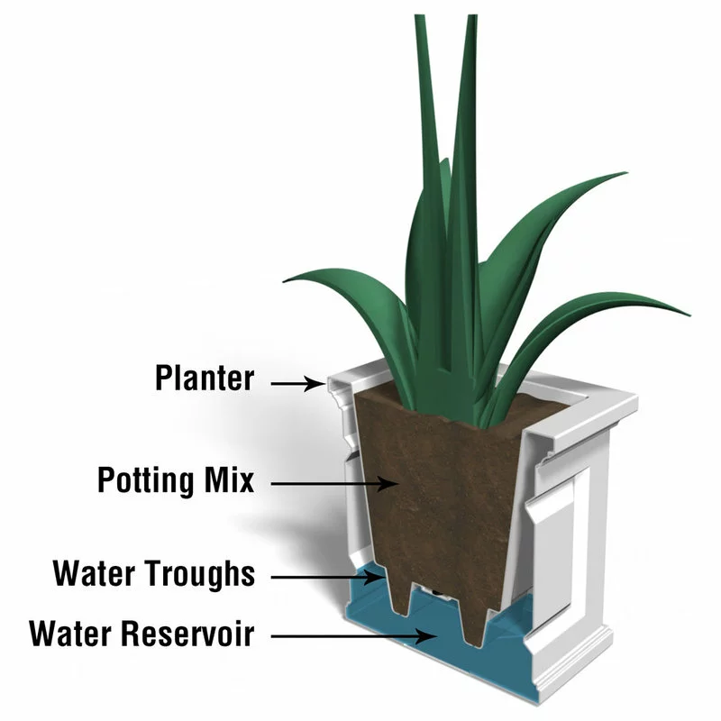 Have the look of wood without the upkeep with our high-grade polyethylene planters. Long-lasting beauty, durability and quality. Built-in water reservoir encourages healthy plant growth by allowing plants to practically water themselves.