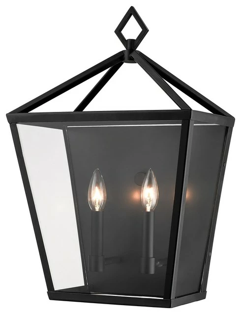 - 2 Light Powder Coat Black Outdoor with Clear Glass