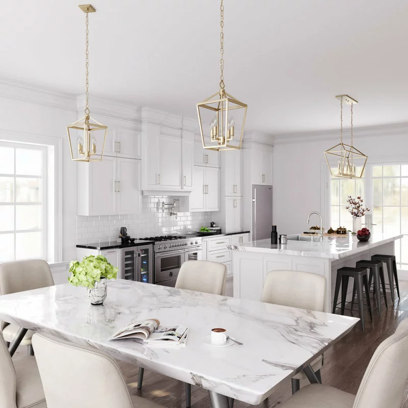 This 4 Light Candle Bulbs 60W 12 in. Modern Gold Pendant is sure to add style to your decor. No bulbs included, UL Listed and must be hardwired
