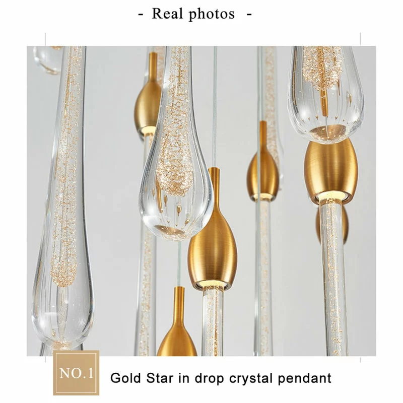 Staircase lighting is a moment that requires the special attention. The correct organization of light in the staircase space will further emphasize the splendor of the living room. An unusual designer chandelier will become the center of the space, attracting everyone’s attention. Our Luxury modern crystal chandelier looks like a work of art, and thanks to the many decorative elements, it creates the effect of streaming light.