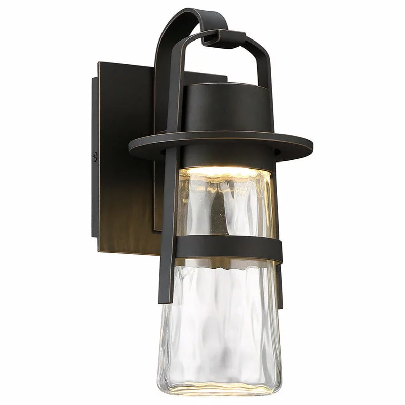 - Aluminum construction with a thick mouth blown hammered clear glass element.