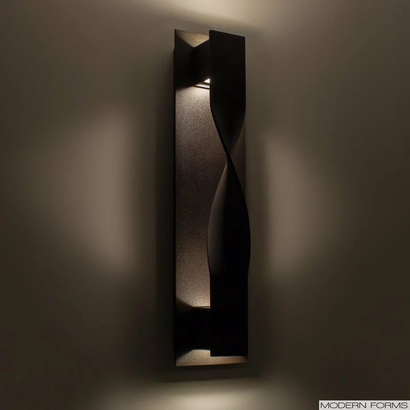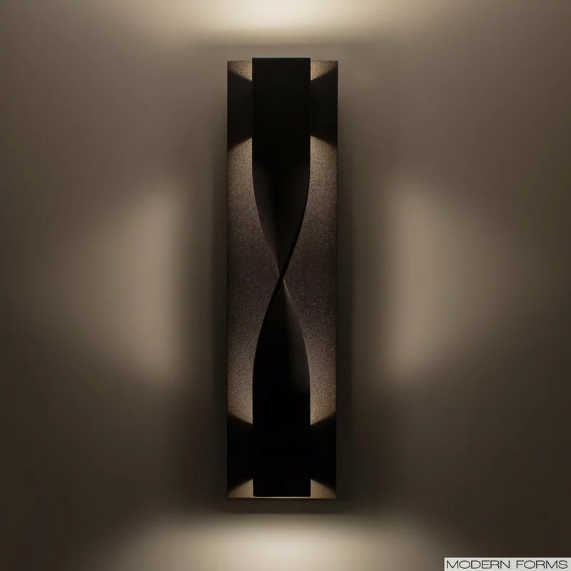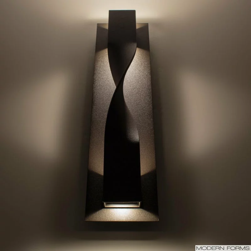 Dramatically illuminated curvature. A multi-dimensional metal wall sculpture captivates from various directions in luxurious exterior and interior environments. The fluid hardware reveals a beautiful play of light and shadow within and architectural wall grazing without.