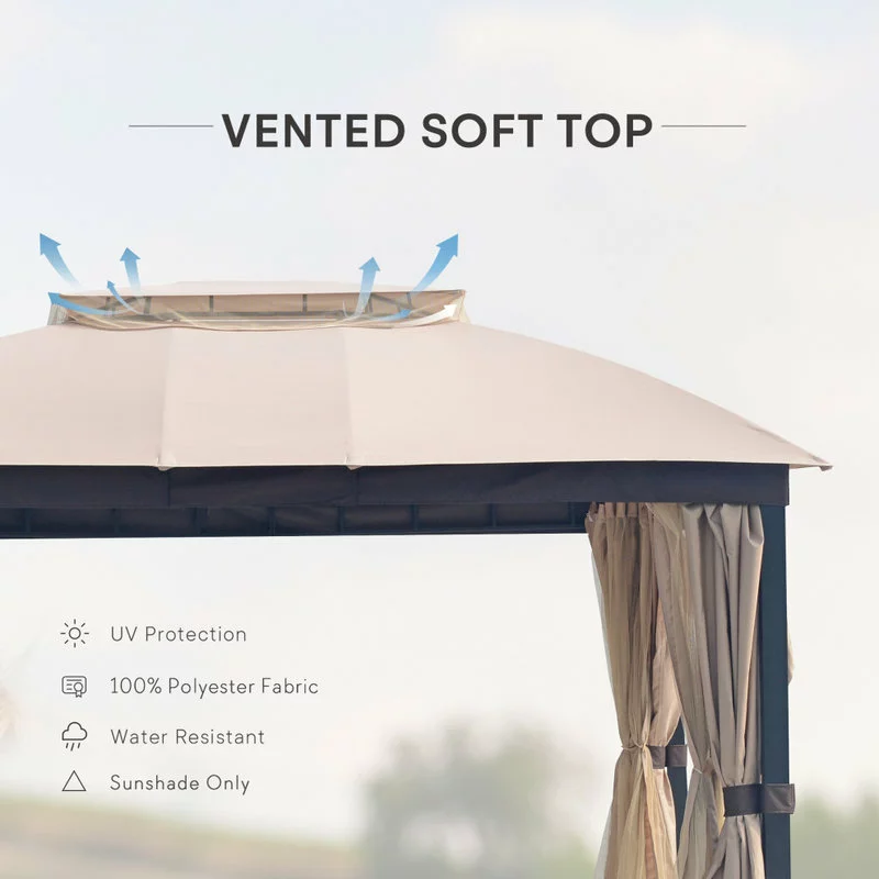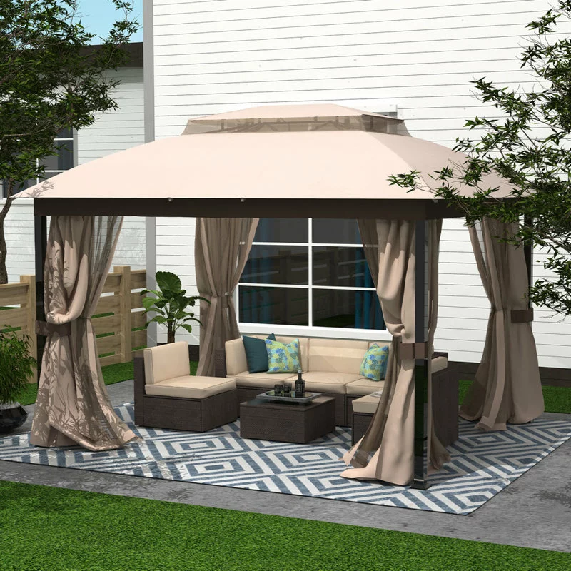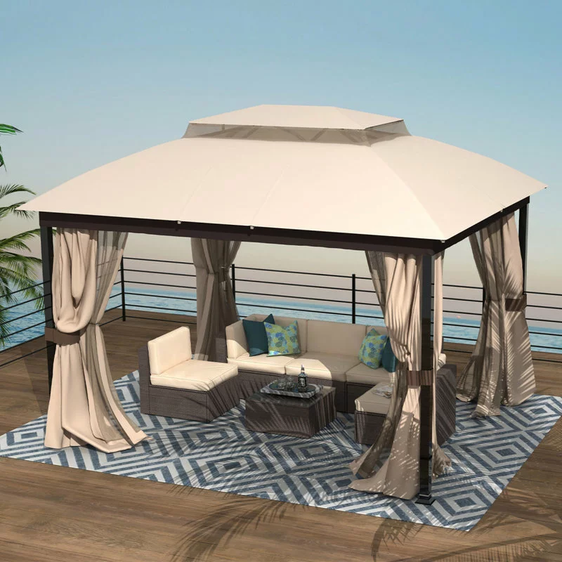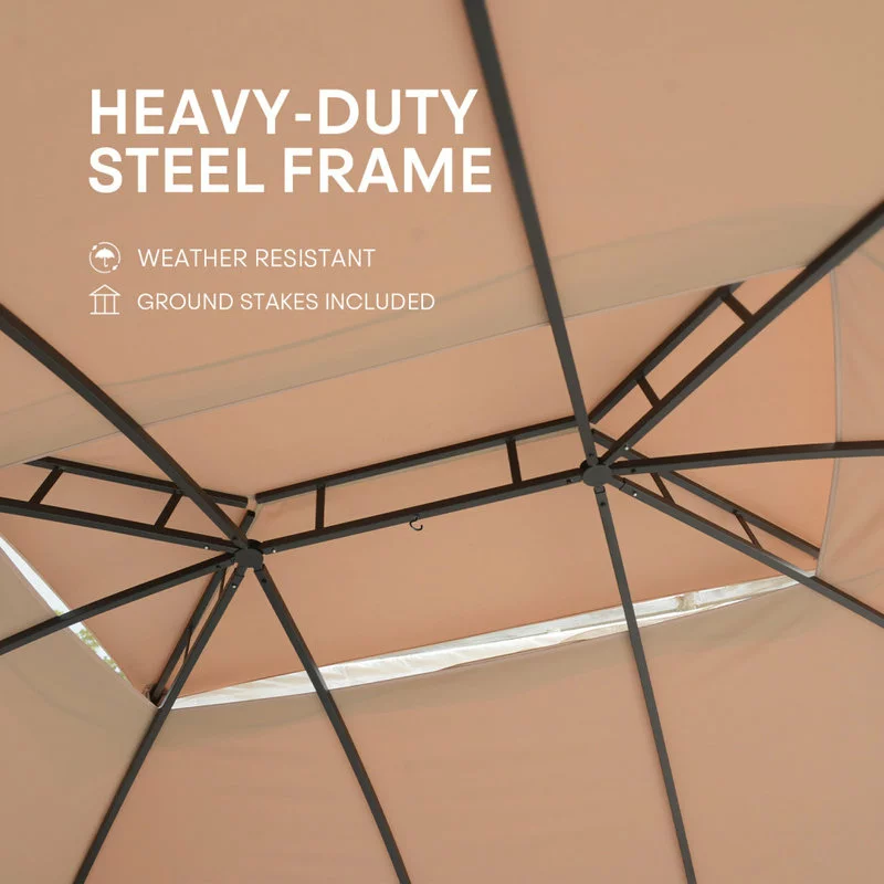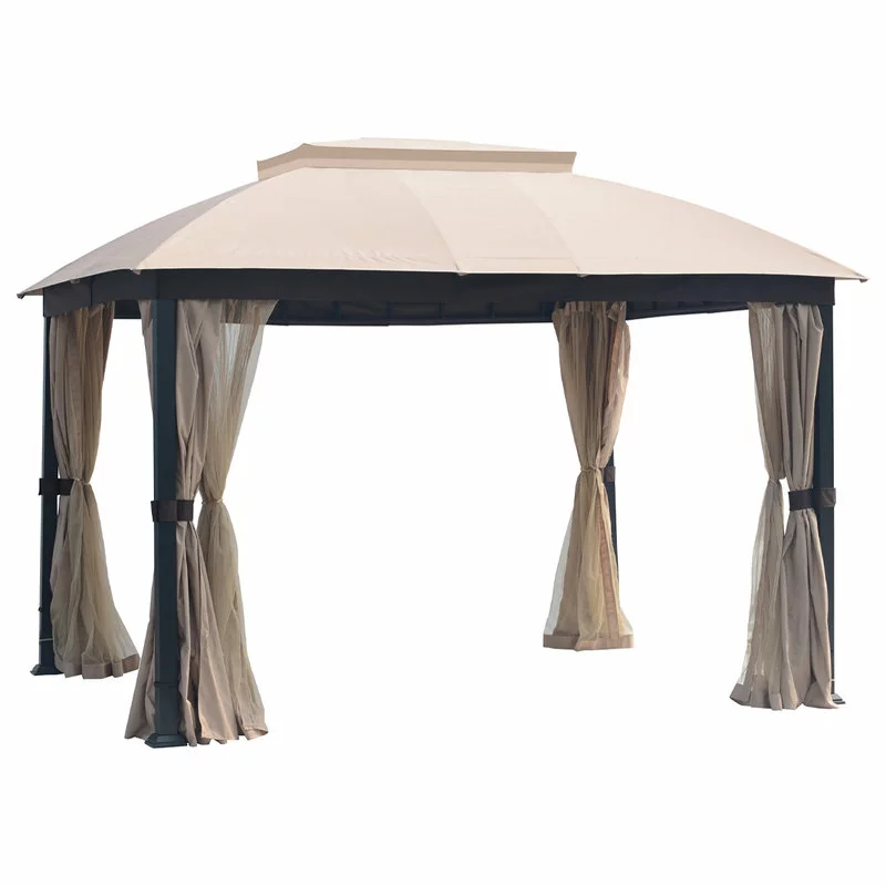 Expand your living space by moving the indoors outside to create an end-of-the-day oasis perfect for entertaining family and friends. This 144″ x 120″ gazebo creates the extra outdoor living experience you’ve been after. Enjoy covered relaxation outside under the rust-resistant powder-coated steel frame with weather-resistant fabric. With straight-forward, easy-to-follow assembly instructions you’ll be relaxing with your choice of any beverage in your new outdoor living space for years to come. It’s the perfect shade addition to any outdoor space and can easily be combined with any outdoor dining tables and dining chairs for maximum shade. It can also be used with sectionals, daybeds, and recliners at hotels, restaurants, and poolside spaces. It’s the perfect piece for relaxing, entertaining and enjoying the outdoors.