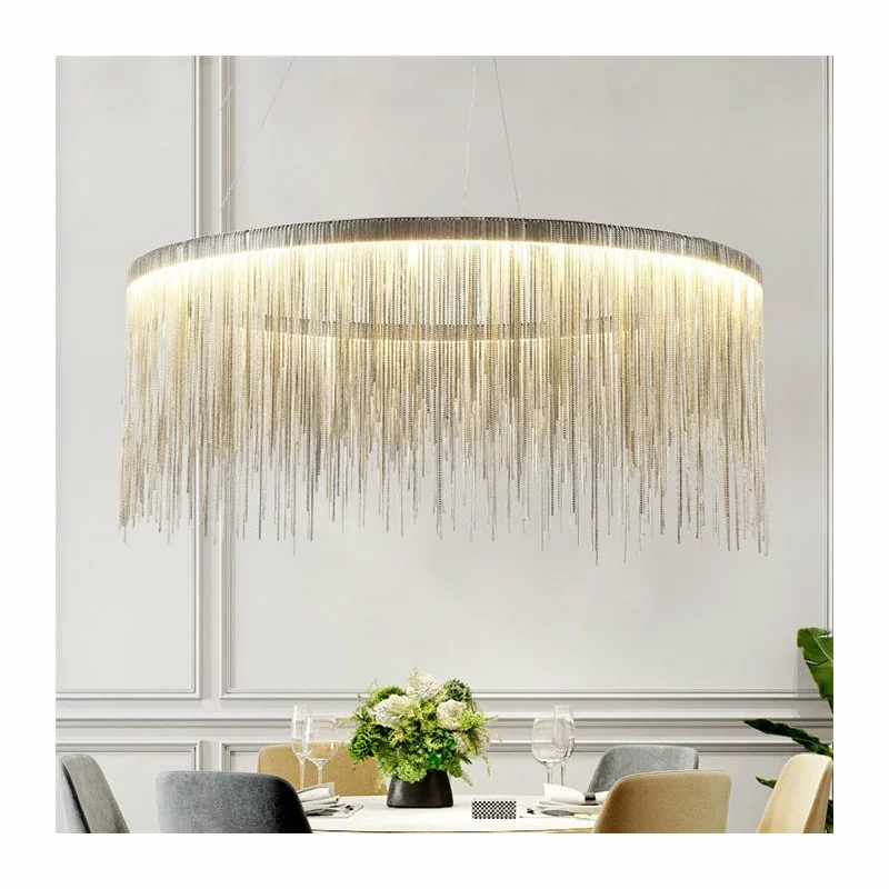 The first impression this chain tassel chandelier leaves is a very strong one. The ring chandelier will delight the most fashion-conscious audience. It’s a statement piece, a classic masterpiece that’s also filled with playfulness. The best part is it never gets old, the chandelier can function in a wide range of decors. Whether your space is traditional or in trend, it never gets old. Versatility is the keyword behind the stunning ring chandelier.