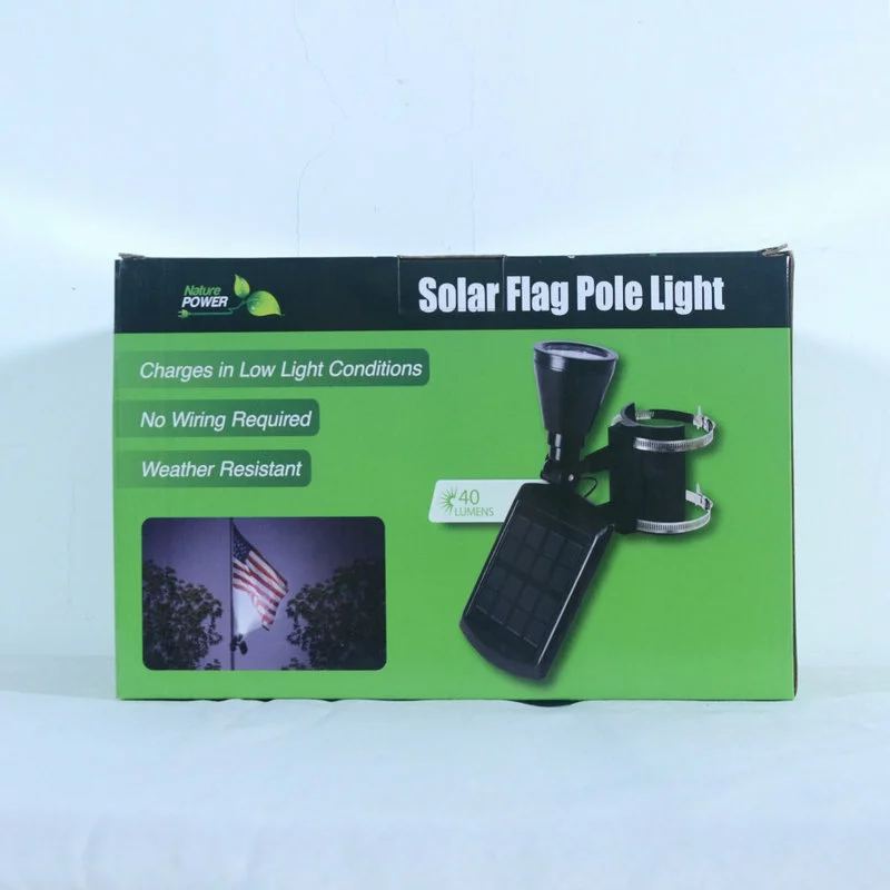 Illuminate your flag for a dramatic nighttime effect with this Solar-Powered Outdoor LED Flagpole Light from Nature Power. Heavy-duty clamps let you position it on any flagpole up to 4 in. Dia. With an adjustable solar panel, four ultra-bright LED bulbs and a rechargeable battery, it can shine for up to eight hours on a full charge. Made from sturdy plastic and aluminum, this weatherproof light automatically turns on at dusk and off at dawn for hassle-free performance.