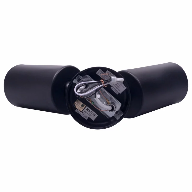 The NICOR 150-Watt outdoor Double-Cylinder Flood Light features two fully adjustable heads, independently directing light where it’s needed. The surface mount security light is the perfect solution for lighting those dark, hard to see areas. The 150-Watt flood light is bright enough to light large areas to provide safety, security, and general area lighting at night in both residential and commercial settings. The weather resistant powder coated aluminum ensures a dependable, long lasting life span. This 150-Watt Double Cylinder Flood Light is available in Black, Bronze, and White. It’s Wet-Location rated for outdoor use and does not require tools for changing the bulbs. Protected by NICOR’s 1 Year Limited Warranty. Requires two 150-Watt Bulbs, not included.