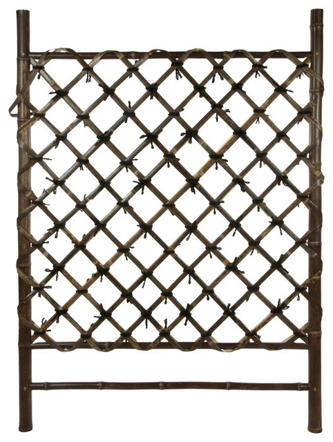 An attractive, well crafted bamboo accessory, often used in Japanese style Zen backyard gardens, indoor gardens, as well as outdoor areas, like a wall under an eaves, sheltered from the elements. It’s about the same width as an interior door and about three and a half feet tall. It’s made from excellent quality kiln dried whole bamboo pole. This is a unique and beautiful trellis, great for creating a barrier in a covered garden or to grow vines. With an attractive, rustic, dark colored bamboo frame and bamboo pole lattice.