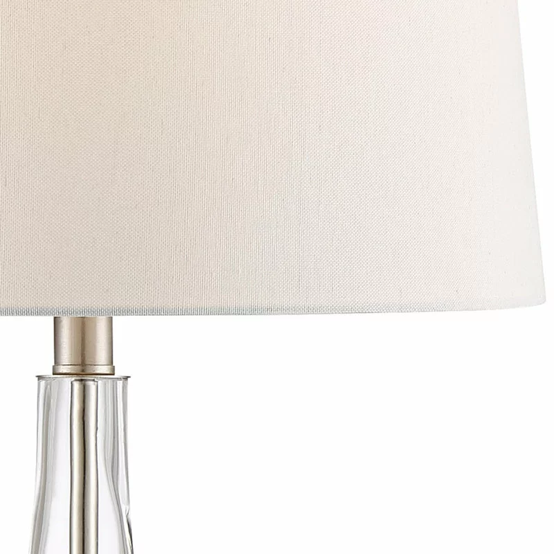 The Pacific Coast Lighting Sparrow Glass Table Lamps in Smoke Gray (Set of 2) feature crystal glass bases with a shimmering gray finish, topped with a crisp, white linen drum shade. Elevate your living space with an elegant twist with the Sparrow Smoke Gray Glass Table Lamps.