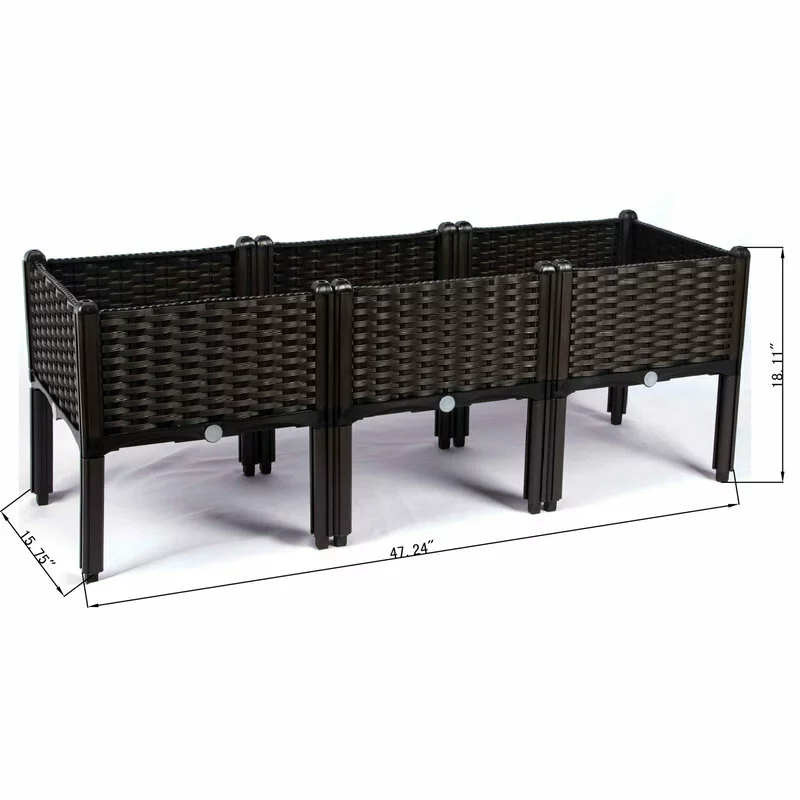 This perfect and ready to use planter box is the best option for your customized garden. The rattan planter with legs can easily be converted to indoor or outdoor use, perfect for planting in the balcony, terrace, garden, backyard, patios, or the corners in your living room. The planter boxes comes in different sets to accommodate your garden needs. Each planter box comes with a stylish Rattan design made of PP material that blends in with any outdoor or in door decor. Besides it beautiful design, this planter is also built with a drainage system design. It features a self-watering disk and drains hole. It provides extra space for water run-off to be preserved, allowing roots to aerate while having moisture nearby, thereby protecting the plant from rot and over-drying. Best of all, this planter box requires no tools to assemble