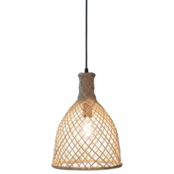 KOUBOO Luhu Open Weave Cane Rib Cloche-shape Pendant Lamp, Natural