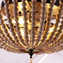 JONATHAN Y Allison Wood Beaded LED Flush Mount, Antique Gold, Cream, 15″, Oil Rubbed Bronze