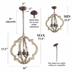LNC Lighting LNC 3-Light Farmhouse Lantern Distressed Rustic And Gray Wood Chandeliers