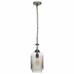 Casamotion Hammered Glass Pendant Light With Brass Ring, 1 Ceiling Hanging Light, Clear, Large
