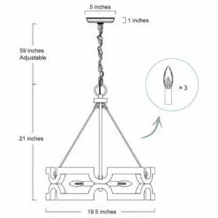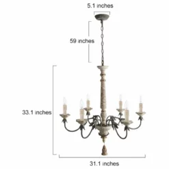 LNC Lighting LNC 3-Light Farmhouse Drum Distressed White Wood And Metal Dimmable Chandelier