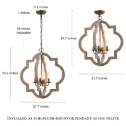 LALUZ Farmhouse 4-Light Wood Lantern Cage Chandelier 24.2″H × 21.7″W