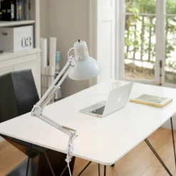 Globe Electric 28″ Matte Light Blue Spring Balanced Arm Desk Lamp With Interchangeable Base