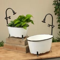 The Gerson Company Assorted Antique-Style Metal Bathtub Planters With Faucet Accent, Set Of 2