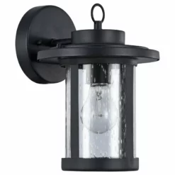 Edvivi Lighting Mira Textured Black Outdoor Wall Sconce Clear Seedy Glass Lantern Light