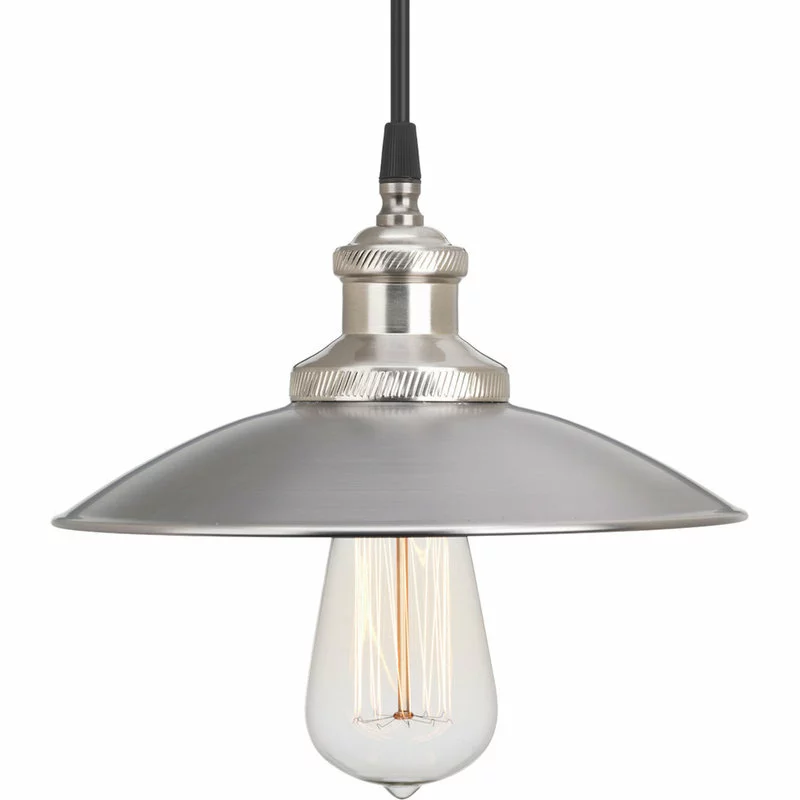 Pendants have the power to change a look of a room instantly. Today, they can be seen in bath and vanity areas, kitchens and foyers and as singles or in groups of two or more. With Archives pendants and wall sconce, carefully crafted details and special accents achieve a vintage electric feel. One-light mini-pendant with black cloth cord and brushed nickel accents