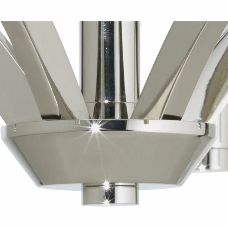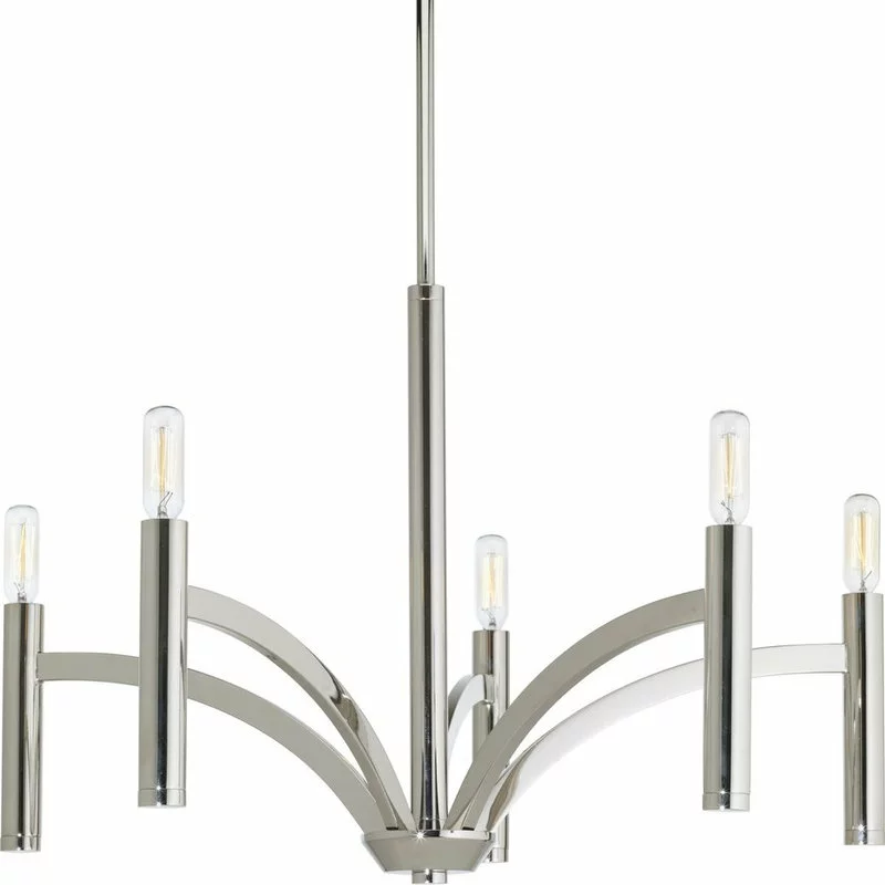 - Five-light chandelier inspired by mid-century modern design.