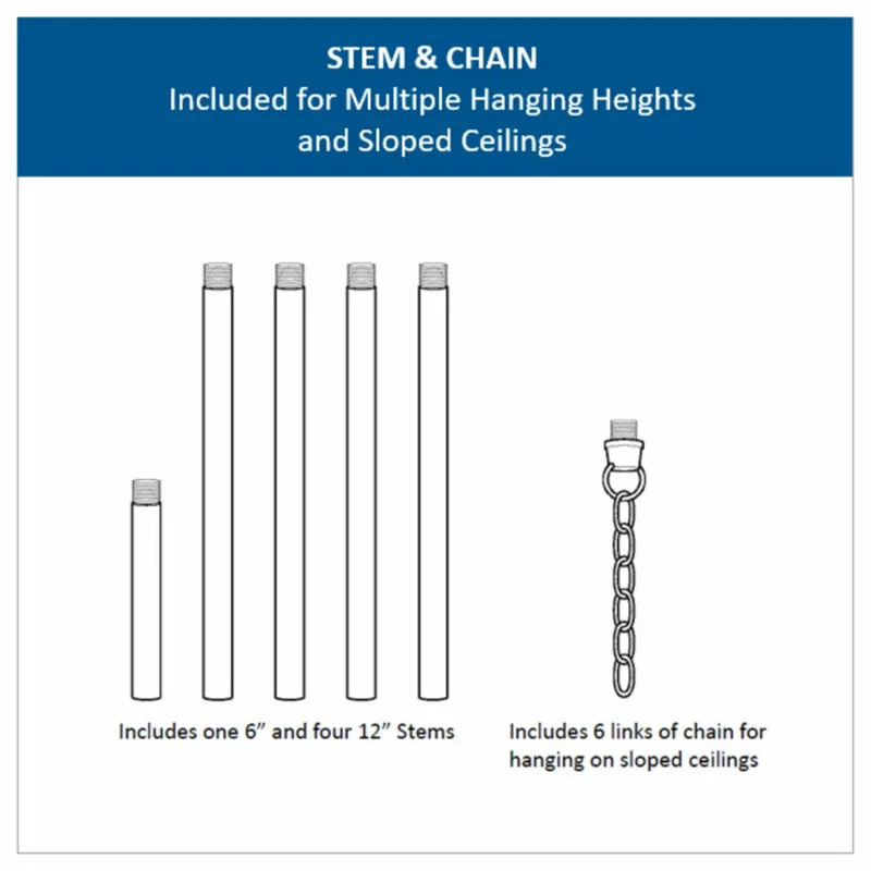 - Mount Type: Ceiling Stem Mounted With 6 Links Of Chain