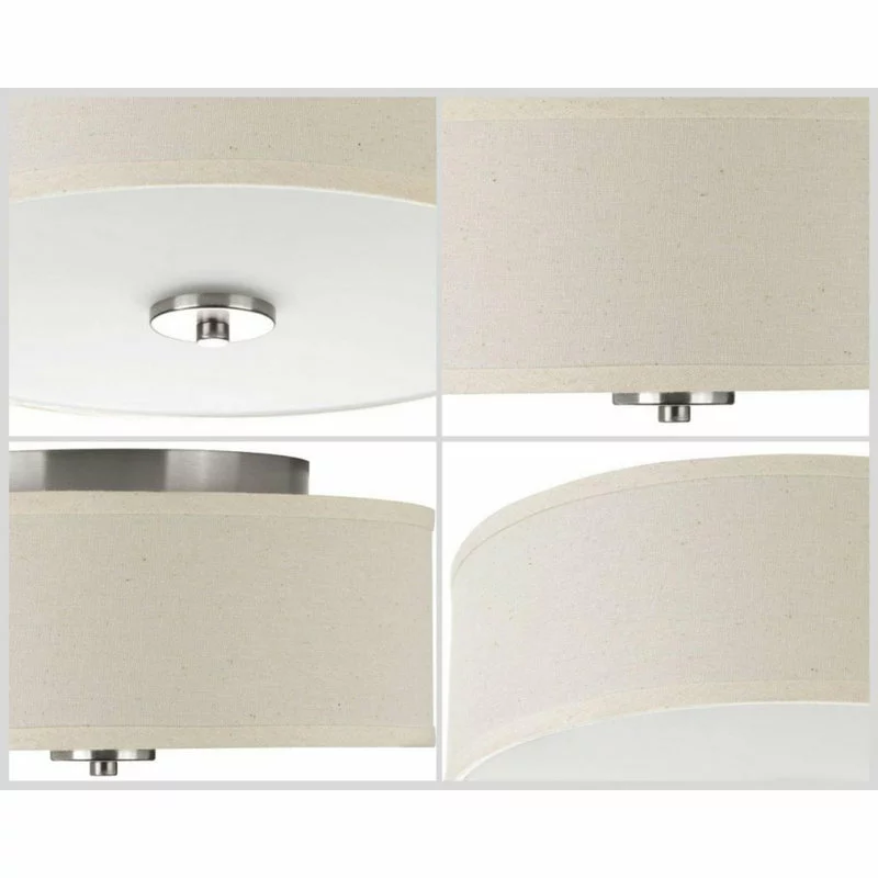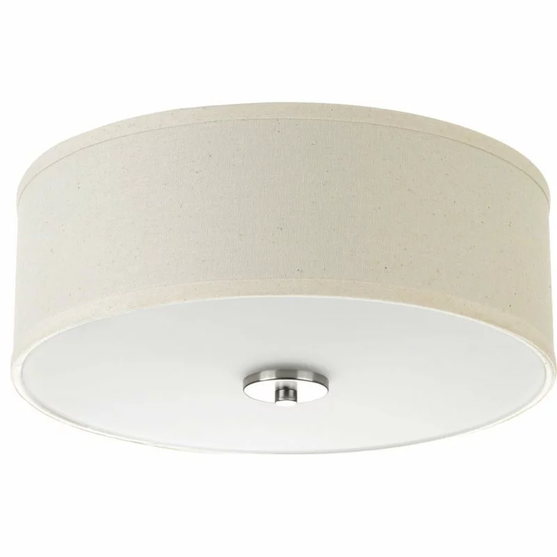 Harkening back to a simpler time, the Inspire Collection freshens traditional forms with flowing lines. Inspire features an etched glass diffuser with off-white linen shades.