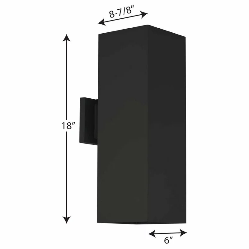 - 6″ outdoor two-light up/down square with heavy duty aluminum construction and die cast wall bracket. Powder coated finish. Black finish.