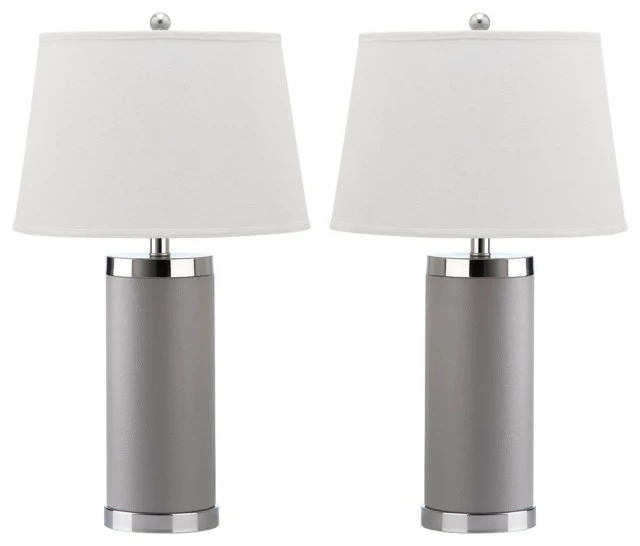 The classic cylinder base gets a chic update for transitional rooms in the Leather Column table lamp by Safavieh. Crafted of sophisticated Gray PU leather base with silver chrome finial and stand, this classic lamp comes with a rectangular cotton shade.