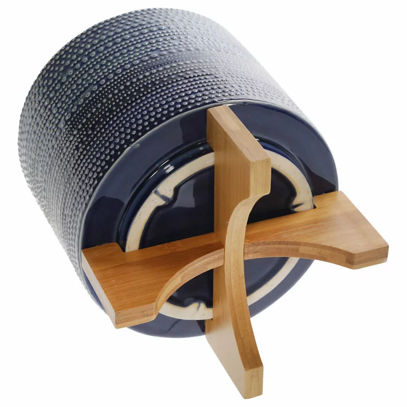 Looking for contemporary and simple planters? You have come to the right place. This stylish planter with stand is useful for keeping plants away from delicate surfaces. The planter is constructed from high-quality ceramic, with a blue hue and dotted design on the outside.